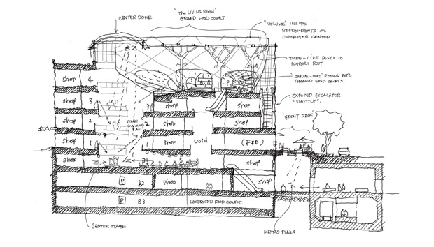 萬谷建筑設(shè)計團(tuán)隊提倡的【都市客廳】是把策劃運營上的變化,變現(xiàn)在建筑設(shè)計室內(nèi)公共空間設(shè)計上,直接反應(yīng)打造出激動人心的建筑外觀,從而進(jìn)一步提高運營效果的設(shè)計手法。